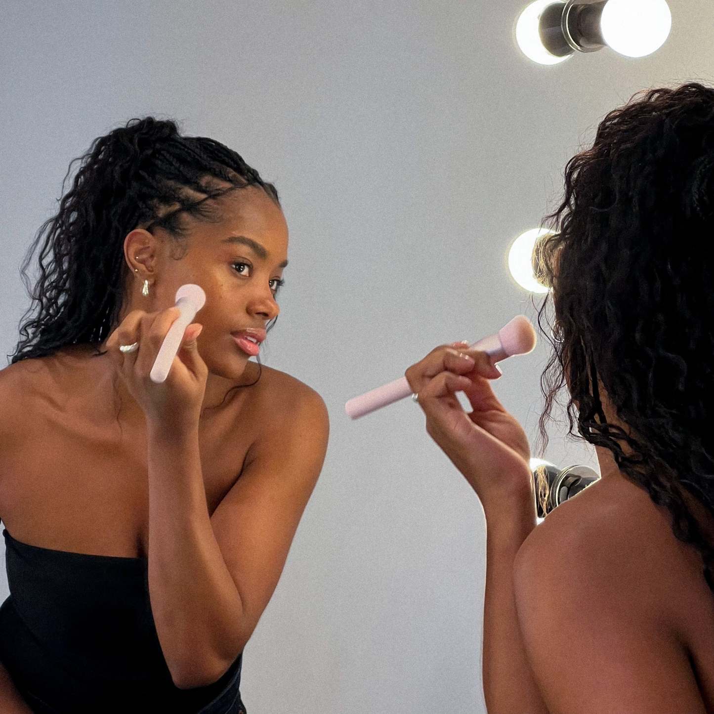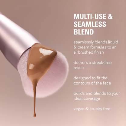 my foundation brush 01 is a vegan and cruelty-free brush that seamlessly blends and builds liquid or cream foundation, blush, bronzer, and highlighter. Designed in a slightly angled shape, the ultra-soft, densely packed bristles offer easy application and fit the contours of your face for a smooth, flawless finish.