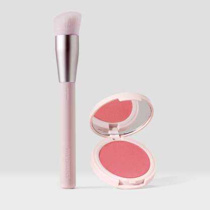 my hybrid blush & foundation brush duo delivers a seamless, mistake-proof pop of color. hybrid blush creates an instant flush with a soft-matte finish while my ultra-soft, densely packed brush delivers streak-free results.