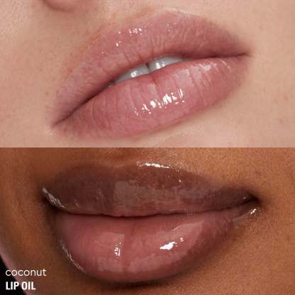 my limited-edition lip oil set includes two lip oils in fan-favorite scents. this set features a clear coconut lip oil and a crème brûlée lip oil that leaves a subtle, natural nude wash of color. with a rich, conditioning texture, they hydrate while leaving lips looking silky-smooth and naturally plumped.