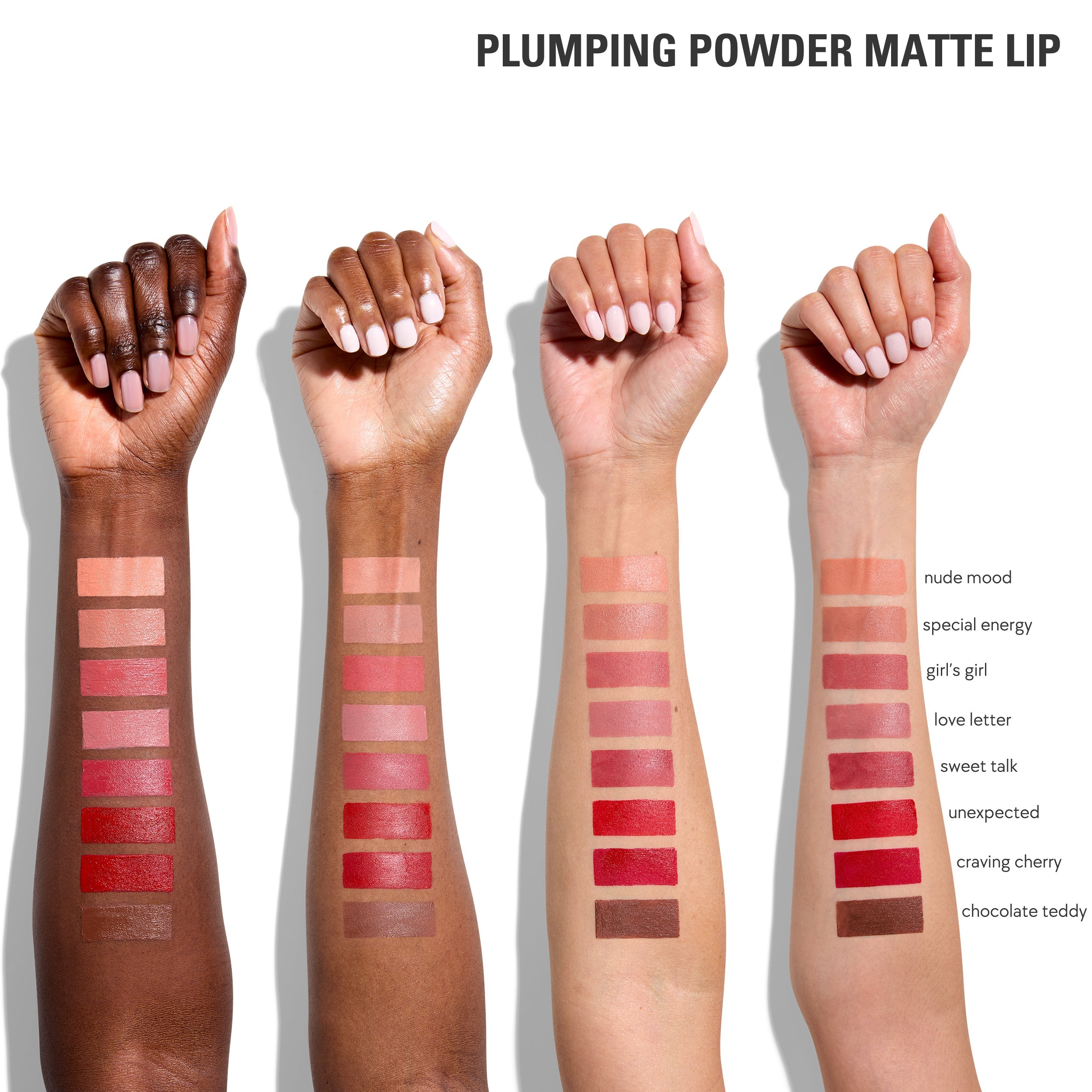 My Plumping Powder Matte Lip is your go-to for creating a plump pout with a lightweight, matte finish. This highly pigmented formula blurs lip lines, delivers full coverage payoff, and lasts up to 12 hours. pair with the plumping lip liner or plumping gloss for a complete fuller lip look.