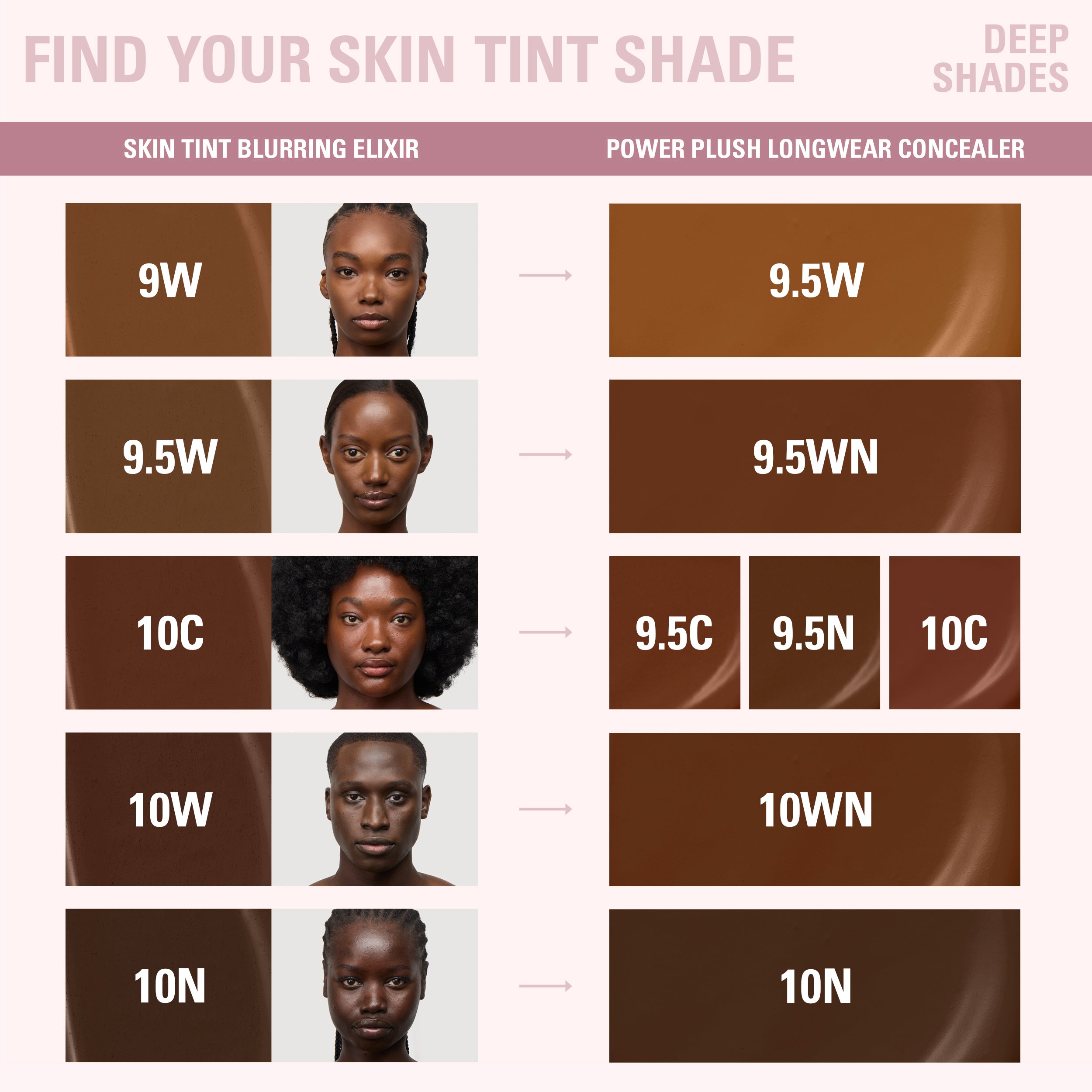 see skin tint blurring elixir and power plush longwear concealer for list of ingredients.