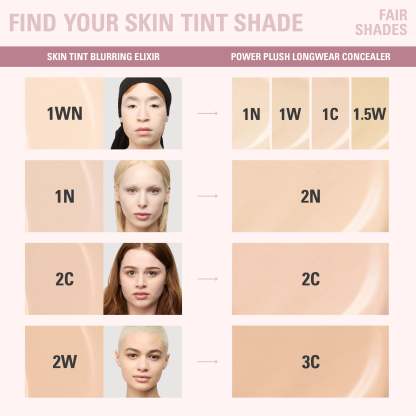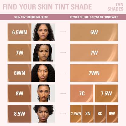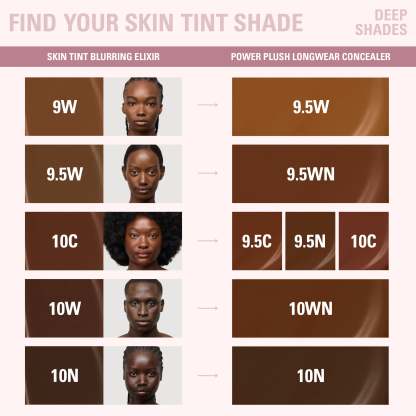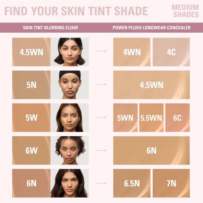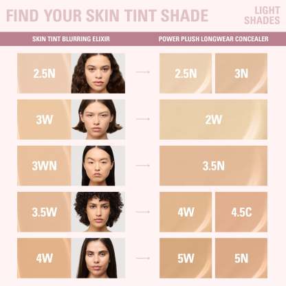 my skin tint blurring elixir & power plush longwear concealer duo is your go-to for a natural makeup look with the perfect amount of coverage. apply skin tint blurring elixir for light to medium coverage with a smooth, second-skin finish. then, use power plush longwear concealer to spot conceal, brighten, or contour.